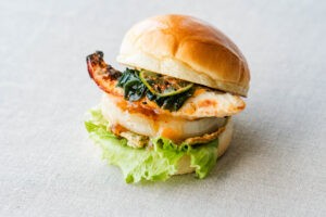 たまらない!あわじ島そうめんサクサク肉厚クリスピーチキンバーガー