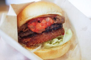 鳥取県大山町で2009年度よりスタートした日本最大規模の「とっとりバーガーフェスタ」。全国各地から集まった県や地域を元気にしたいと考える団体が、ご当地の食材を使ってバーガーにアレンジし、競い合うのが、ご当地バーガーの祭典です。2011年より、そのトップを極めたバーガーのみに与えられる賞として実施されたのが「全国ご当地バーガーグランプリ」です。