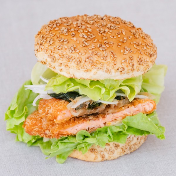 サクラマス!あわじ島旬のレタスとサクラマスカツバーガー~ちょっぴりワサビ風味~